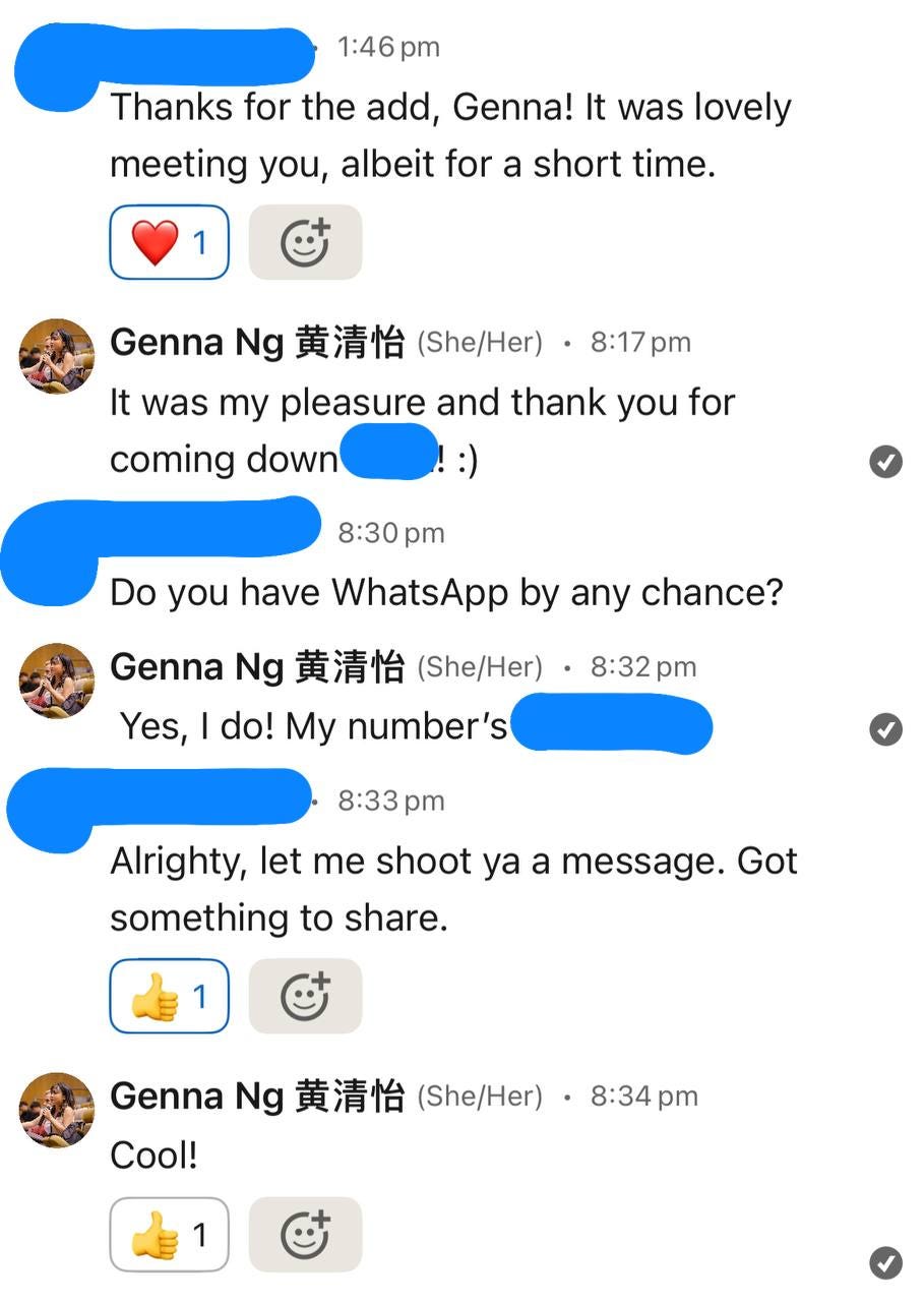 → A batchmate I barely knew publicly tagged me and replied: "Like your boobs."