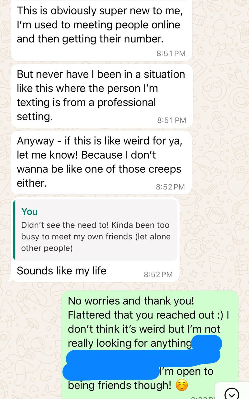 A guy from the industry reached out on LinkedIn, and wanted to talk to me over WhatsApp.